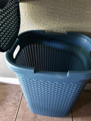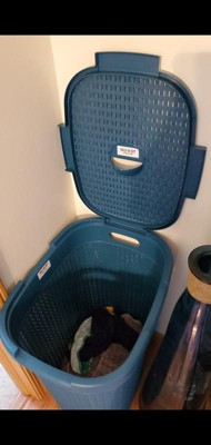 [This review was collected as part of a promotion.] I love these laundry baskets/hampers. They are a fun colored teal. Although the baskets are plastic, they are sturdy but still light. The lids help remind me to adult better. Once the lid doesn't stay on, it's really time to do laundry. The handles are comfortable and allow for good grip. These are a wonderful addition to my home