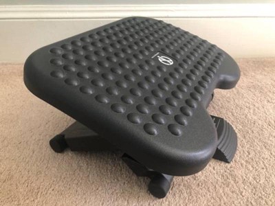 [This review was collected as part of a promotion.] I was in need of something to rest my feet on at my desk and the Mind Reader Anchor Collection Adjustable Ergonomic Foot Rest worked out great. Being petite means my feet are rarely comfortably resting on the floor and sitting on the edge of my seat to reach just places the discomfort elsewhere. This foot rest really aids in putting my body into a less stressed position. I enjoy how this has several different settings to control the height and angle and also rocks a bit, so my feet are not in an awkward position. The added bumps gives grip whether you are wearing shoes or not, and feels really nice on your feet when I'm working at home. I love the two pack this came in so I could put one in my office and one for my at home work space. These both seem fairly sturdy and I enjoy resting my feet on them. I would recommend this to anyone in need of a foot rest.