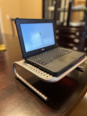 [This review was collected as part of a promotion.] I was so excited to receive these ventilated laptop risers and that it came with 2 of them! My laptop fits perfectly on the riser. I gave the second to my husband and he uses it everyday now for work.
