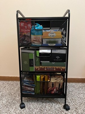 Mind Reader 3 Drawer Mesh Rolling Heavy Duty Multi-Purpose Cart
