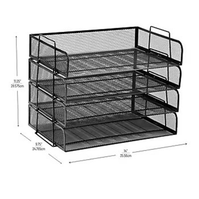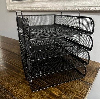 Mind Reader 4-Tier Stackable Paper Tray Metal Mesh Black