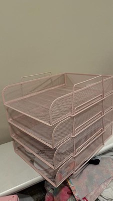[This review was collected as part of a promotion.] The Mind Reader stackable paper tray and desk organizer is my new favorite office item. It is simple to put together, made of sturdy covered metal and looks so nice on my desk. My prior tray organizer was plastic and had cracks all over it. This material will last a long time and still look great. It cleared up the messy parts of my desk and keeps everything looking neat. I love the pink for my home office. I even purchased a black one for my desk in the office. Everyone at work wants one.