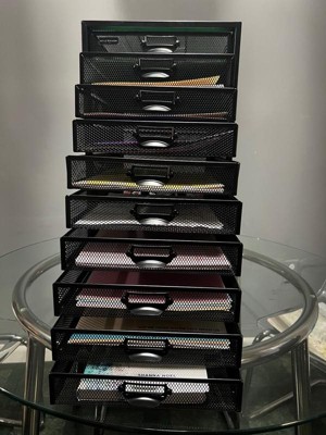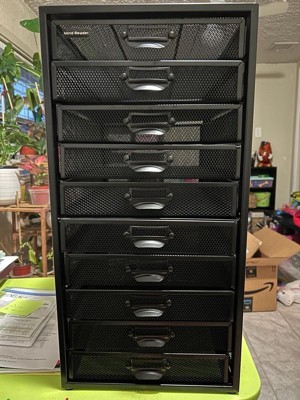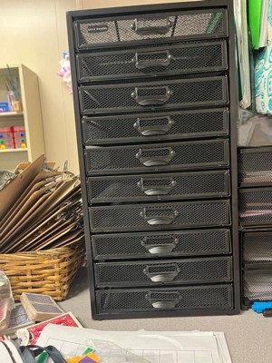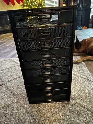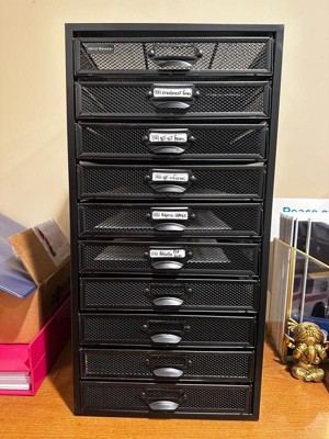 [This review was collected as part of a promotion.] This shelf is perfect for those that love their lives organized. The black mesh metal is the perfect style for my office. It is very well made and heavier than I expected it to be. I love the amount of drawers that it has and I especially love the fact that it has the inserts to label the drawers! You really can’t go wrong with this shelf!!