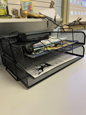 [This review was collected as part of a promotion.] I work from home, so office organization is a must. This paper tray works great to organize anything from my mail to magazine subscriptions to my latest work-in-progress novel. Black mesh also works great with my office decor, so I'm enjoying it.