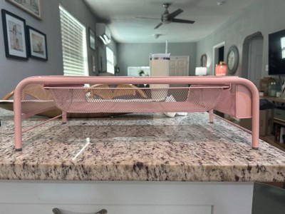 Mind Reader Monitor Stand, Ventilated Laptop Riser, Paper Tray, Storage, Office, Metal Mesh, 20"L x 11.5"W x 5.5"H, Pink