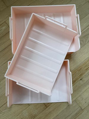 [This review was collected as part of a promotion.] Great organizer paper tray! Made of a sturdy pink plastic, with a great sleek design. Fits perfectly on my desk and looks so pretty. Fantastic addition to my desk!