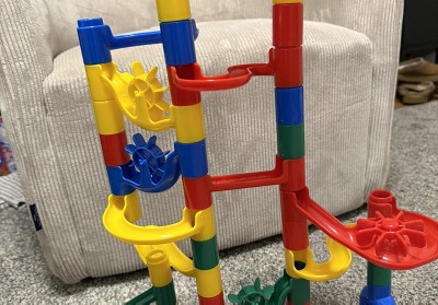 This marble run is pretty great. My toddler loves to build different configurations and continues to be impressed by gravity and all it’s wonders haha. I do wish it had slightly more “down hill” pieces to help the marbles gain more momentum, but I still recommend it!