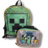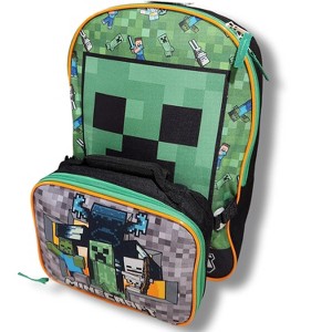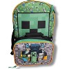 Minecraft Green Backpack for School with Rectangular Lunch Bag, for Boys