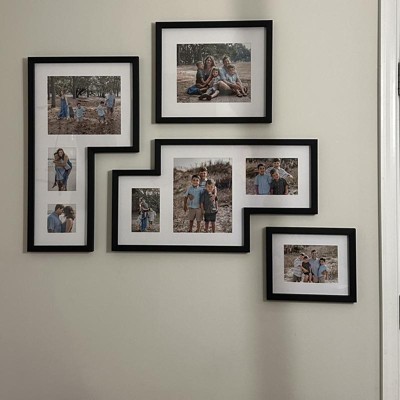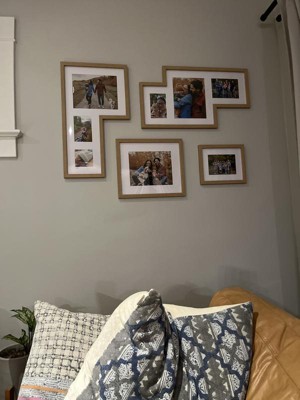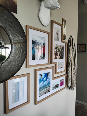 Purchased 2 of these sets for my hallway b/c I just wanted something different and not all of the same size 8x10 pictures. This frame set is absolutely perfect. There are not separate mats for each picture but the matting is one piece (as seen in the picture). They're lightweight and easy to hang. Each frame set has many sawtooth hangers on the back so that you can switch which way you want them to hang. Set also includes a diagram of the various ways to arrange the set to your liking. I definitely recommend these frames. Absolutely perfect for a modern look!