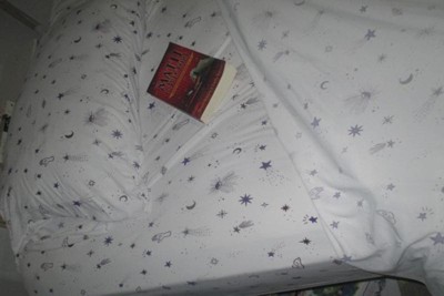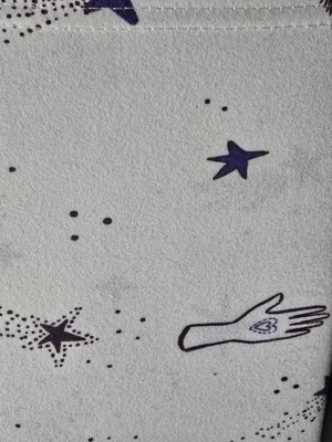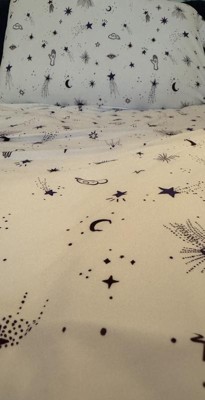 These sheets are printed with a mystical/celestial pattern of stars, moons, and eyes that is sure to be a hit with your tween or teen. I could see some younger children being afraid of the eyes! They are super soft and smooth-almost like a t-shirt material, but 100% recycled polyester. These sheets are easy to wash and dry.