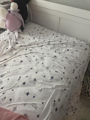 The Mingled Threads Twin Celestial Garden Jersey Sheet Set has got to be one of the softest set of sheets i have ever laid on and unfortunately they are for my daughter, so she gets to sleep in the sheets. The color and pattern is super cute for my teenager and the extra grip to keep the sheets in place, is an added bonus. I would definitely recommend!