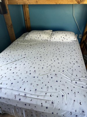 I am in love with these sheets! The celestial print in white and purple is absolutely stunning—fun, dreamy, and adds such a magical vibe to the bedroom. But the real standout is how incredibly soft they feel. I’ve had other soft sheets before, but these are next-level comfort. What truly blew me away, though, was how easy they are to put on. I have a deep mattress, and usually that means a battle with the fitted sheet—but not with these! The corners stretch beautifully and make it effortless to get everything in place. No tugging, no frustration—just smooth, easy bed-making. These are officially my favorite sheets. I’ll definitely be buying another set!