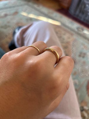 Love this ring! It's the perfect simply addition to add to your rings and is super affordable! Only thing I'm concerned of is how easy it is getting little scratches, so I'm not sure how it will look in a few months.