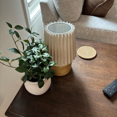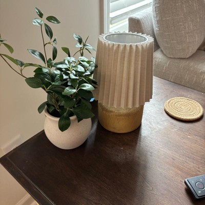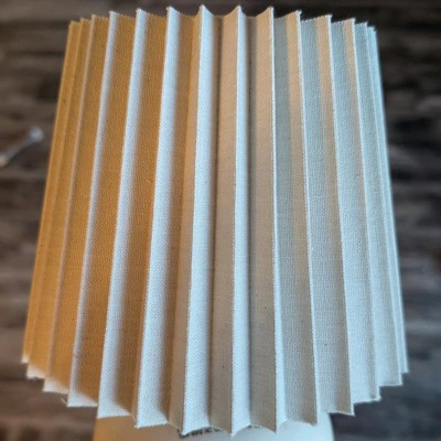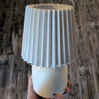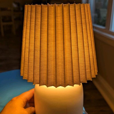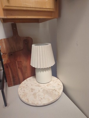 [This review was collected as part of a promotion.] This mini lamp has a beautiful ivory base. I like that it isn't super big as I don't have much room for decor items. The color of this is classy and goes with our coastal decor. The neutral color would also go well with other styles. The price is very affordable and it seems to be well made. I love the way it looks with the light on