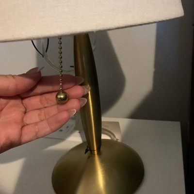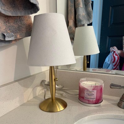 [This review was collected as part of a promotion.] This lamp is the perfect size for a bedside table. It doesn't take up much space but still provides just the right amount of light. I love the little pull chain to turn it on and off— it's a simple detail, but very convenient. The brass finish looks great and adds a nice touch to the room. Overall, it's a great lamp for a nightstand.
