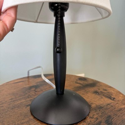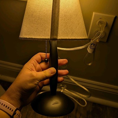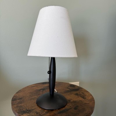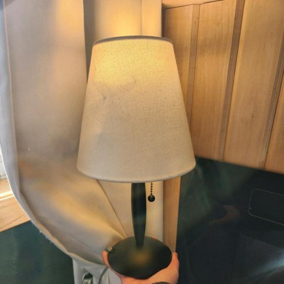 [This review was collected as part of a promotion.] I bought this little black lamp for my bedroom nightstand and I really like it. The black finish is classic and goes with everything so it doesn’t clash with any of my decor. The pull switch makes it super easy to turn on and off. The size is great for a smaller table and it puts off just enough lighy for reading. For the price, it’s a great deal.