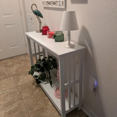 [This review was collected as part of a promotion.] I got this room lamp for the top of my fire place and I love the size and how soft the glow is from it. It really is a great size and would be great for an accent area or side table. Its a white ish cream colored shade and the stand is black . Which would mesh sell with any room decor or style. A great item