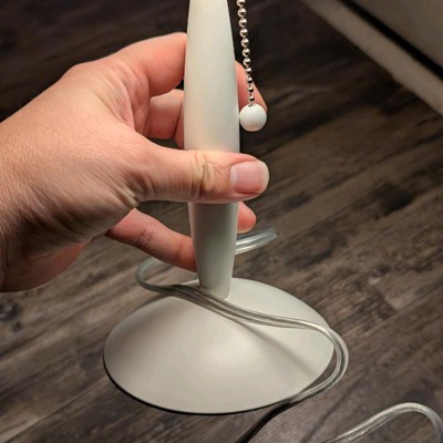 [This review was collected as part of a promotion.] I purchased this adorable and perfect white mini stick lamp made by room essentials for my guest room. I put this little lamp right on the nightstand next to the guest bed and it’s the perfect addition to the table and bedding decor. It’s lightweight and it has a pull string to turn the lamp on and off.