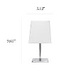 A lovely, inexpensive, and practical 9.65" table lamp that will meet your basic fashion and lighting needs. This mini lamp features a chrome base and fabric shade with an easily accessible rotary switch that is located on its cord. This lamp is perfect for living room, bedroom, office, kids room, or college dorm!