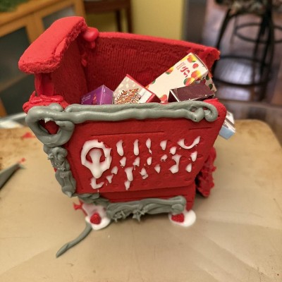 First off a bunch of pieces were broken upon opening. I had to “glue” them back together with icing. Instructions are not clear when putting together the grocery box items I had to use my hot glue gun to put them together.