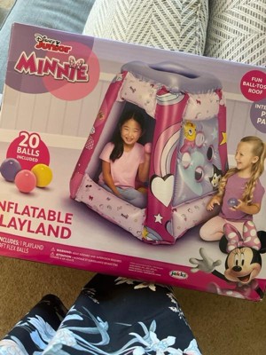 [This review was collected as part of a promotion.] I received this Disney junior Minnie Mouse inflatable playland. This came perfect time for my niece who I kept for a week. She is 3 and absolutely loved playing with this. It was easy to blow up although each corner and spot is a different blow up spot. Which is ok because if one side does get popped it will still work. It does come with 20 soft balls. She loved matching the balls up to the holes in the side and of course throwing the balls through the roof. This was a cute little hide away for her. We both enjoyed it I loved watching her laugh and have fun and she just loved loving it! Definitely recommend this for anyone 2 and up!