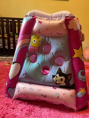 [This review was collected as part of a promotion.] I love this little inflatable playland. It’s perfect for my daughter and her little cousin. It was easy to inflate, and we love the little ball toss. I even wanted to climb in. I love it