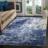 The unique rug pattern imbues your room with a sense of dynamism and modern flair. Unveil a sophisticated canvas of abstract design, where the interplay of blue hues and subtle white accents creates a captivating visual texture that will complement a range of interior decors.