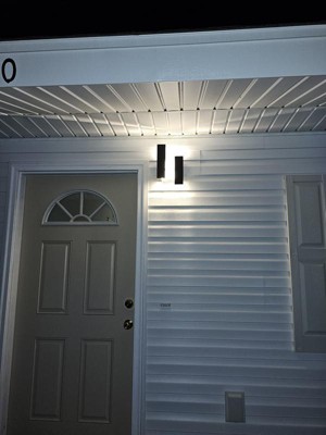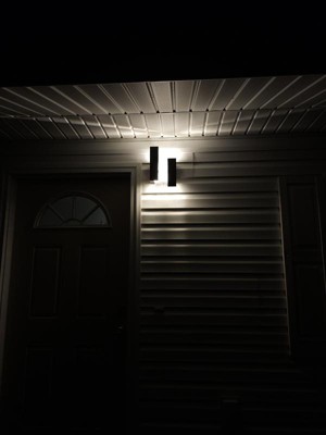 I installed this beautiful modern looking Miranda outdoor light on my patio entrance. It lloks fantastic! The install was quick and easy. The glass panels against the black panel give it a sleek modern look. It looks light architectural piece of art. The LED light shines very bright at night. I am super stoked about my new light. My neighbor asked me where I bought it becuase they really like how it looks.