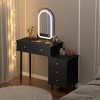 This vanity cleverly combines smart lighting, flexible storage, and elegant design to create a fully equipped beauty space for your bedroom or walk-in closet. It features an adjustable brightness lighting system with multiple light modes, ensuring precise and natural makeup application for any time or occasion. Multiple drawers and an adjustable three-tier storage cabinet organize cosmetics, tools, and accessories, keeping everything neatly in place. Its modular structure allows flexible layout adjustments, easily adapting to corners, walls, or freestanding placement to maximize space utilization.