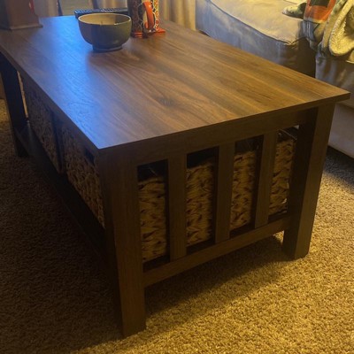 Mission Coffee Table with Woven Baskets - Saracina Home