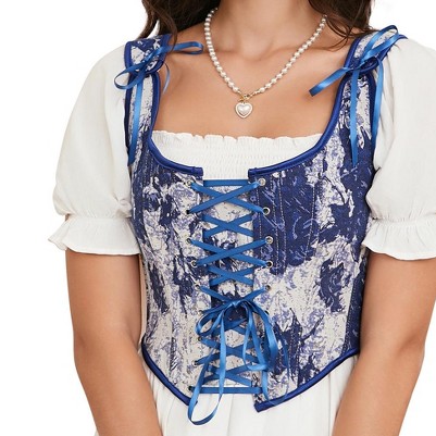 Women's Vintage Floral Corset Lace-Up Fishbone Print Vest Renaissance pirate costume