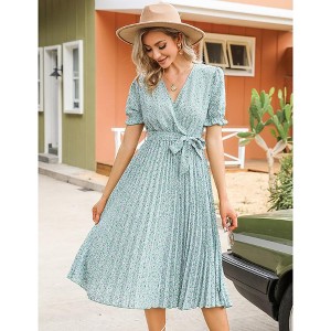 YesFashion Women's Wrap V Neck Floral Pleated Dress Short Lantern Sleeve Belted Flowy A Line Midi Dress - 2 of 4YesFashion Women's Wrap V Neck Floral Pleated Dress Short Lantern Sleeve Belted Flowy A Line Midi Dress - 3 of 4YesFashion Women's Wrap V Neck Floral Pleated Dress Short Lantern Sleeve Belted Flowy A Line Midi Dress - 4 of 4