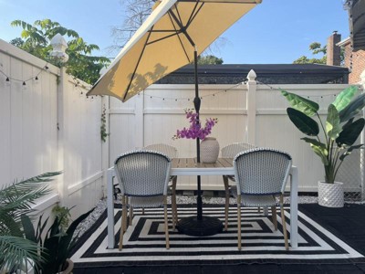 I highly recommend this black and white Mitre Stripe rug for your outdoor oasis. The quality is great and is easy to clean. It will definitely modernize your space.