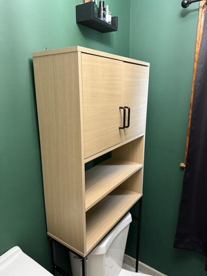This is a really nice over the toilet storage cabinet. It is made very well, easy to put together, comes with clear and easy to follow directions. It fits perfectly over the toilet, a good space saver cabinet. It has a good amount of storage space for a bathroom.