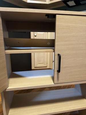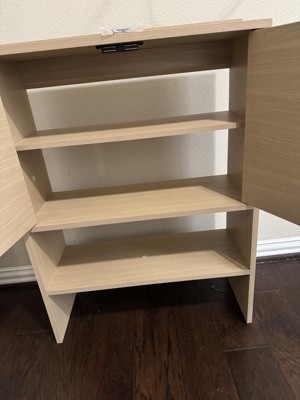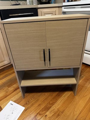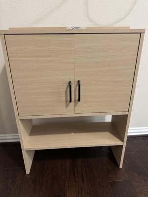 This is a great cabinet for an affordable price. This cabinet was actually quite easy to put together and the instructions were clear. The material is pretty durable and feels very good quality. It’s quite roomy and can fit quite a bit of stuff. I like how their are handles to make it easy for my kids to open.