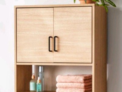 This Mixed Material Bathroom Wall Cabinet by Brightroom™ is just okay. Usefulnesswise it dies the job and it very neutral in color. The material itself is a cheap fake wood look rhat im afraid in a moisture laden setting is going to eventually delaminate.