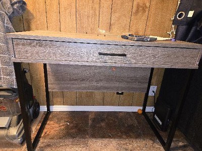 The desk looks good..... The material is super cheap and just not what I expectedat all. the drawer and bottom of desk are already chipping. The glue to hold the coating it all peeling on a corner, the drawer has a stutter going in and out and when you writing ot doign anything on the top you can feel the desk sagging down. Also the edges are super sharp.