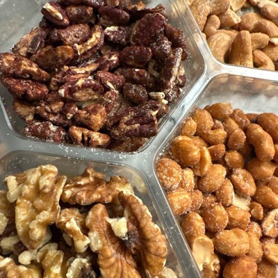 This is an amazing nut mix for your own family or a party. It comes in a great tray that is easy to open and keeps the nuts separate. Each nut is so good and tasty and I love that they have slightly different flavor profiles - a little sweet, a little salty, a little mix of nuts, etc. it’s so good and well priced!