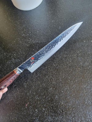 [This review was collected as part of a promotion.] The knives are beautiful to look at as well as very functional. I am able to cut smoothly and easily through hard root vegetables like, carrots and potatoes. I can create very thin slices easily. They are perfect for slicing thin pieces of meat for making jerky. We process a lot of our on meat and they hold and edge very nicely. They are exceptional knives!!