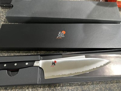 Absolutely love my Miyabi Chef’s knife! This and the paring knife were my first 2 high-quality knives, and WOW, does it make a huge difference. The chefs knife has a comfortable handle, sleek blade, and cuts through meat and vegetables like butter. I will be upgrading my entire kitchen knife collection to the Miyabi Evolution series.