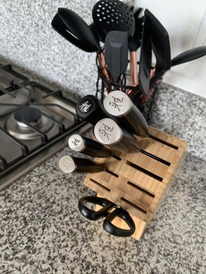 Beautiful set and incredibly sharp knives. This set is gorgeous and every knife is unique. I love that the block has extra spaces to customize the set with additional pieces.