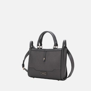 The Melody Tote Bag is a compact, stylish daily companion made from grainy vegan leather with smooth trim and gold-tone hardware. Featuring a top-zip closure, it opens to a fully lined interior with a wall zip pocket and slip pocket, plus an exterior back zippered pocket. The bag has a structured design with protective feet, a front emblem plate, and a decorative snap stud. Carry by the top handles or use the adjustable crossbody strap for versatile, on-the-go style.