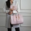 Crafted from high-quality vegan leather with a soft pebble texture, the Yola Satchel Bag combines elegance and practicality. Its slightly structured silhouette is adorned with luxurious gold-tone hardware, a decorative M keychain, and a turn-lock closure for a sophisticated touch. Metal feet ensure stability, while the spacious interior, featuring a mid-centered zipper pocket, keeps your essentials organized. Accompanied by a matching wallet with a convenient wristlet handle, this set is perfect for everyday style and functionality.