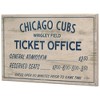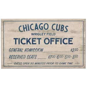 Go, Cubs, Go! Reflect on your special memories at Wrigley Field with this vintage washed MDF wood sign. With blue text detailing long-ago ticket prices, this retro wall art is the perfect addition to your game room, man cave, or workshop.