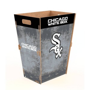 Add team spirit to your space while keeping it tidy with our Team Color Waste Bin Large. This trash can features four connecting sides and a bottom, secured together with locking pieces for stability. It also includes two convenient handle cutouts for easy transportation. The design of the trash can showcases your team's logos in the center of each side, surrounded by a grunge-style background in your team's colors.