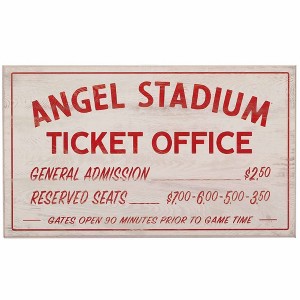 Calling all Angels! Reflect on your special memories at Angel Stadium with this vintage washed MDF wood sign. With red text detailing long-ago ticket prices, this retro wall art is the perfect addition to your game room, man cave, or workshop.