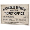 Sing the Beer Barrel Polka and reflect on your special memories at Miller Park with this sign. With dark blue text detailing long-ago ticket prices, this retro wall art is the perfect addition to your collection of Brewers memorabilia.
