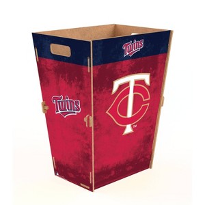 Add team spirit to your space while keeping it tidy with our Team Color Waste Bin Large. This trash can features four connecting sides and a bottom, secured together with locking pieces for stability. It also includes two convenient handle cutouts for easy transportation. The design of the trash can showcases your team's logos in the center of each side, surrounded by a grunge-style background in your team's colors.