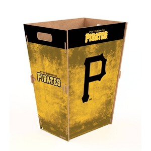 Add team spirit to your space while keeping it tidy with our Team Color Waste Bin Large. This trash can features four connecting sides and a bottom, secured together with locking pieces for stability. It also includes two convenient handle cutouts for easy transportation. The design of the trash can showcases your team's logos in the center of each side, surrounded by a grunge-style background in your team's colors.