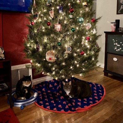 It was as it was pictured. Soft, good material. Cute button accent closure. Do not fold it to store it. Hang it so it doesn't show creases. I love it under the tree! Go Angels!!